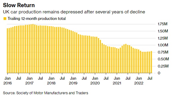 英国汽车行业多年来一直在挣扎,受到从英国退欧到新冠疫情等危机的打击。过去两年阻碍生产的全球芯片短缺问题正在缓解,但通胀加速和经济增长降温构成了新的障碍。