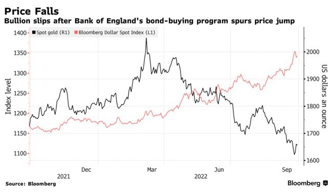 但随后,英国央行的干预刺激了美元和美国国债收益率的下跌,这为以美元计价的黄金提供了缓解。周三黄金上涨1.9%,创下3月初以来的最大单日涨幅。