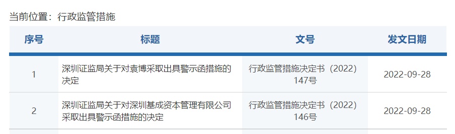 对此,深圳证监局决定对基成资本采取出具警示函的行政监管措施;袁博于2017年1月至今担任基成资本法定代表人、执行董事、总经理,对基成资本上述违规行为负有责任。
