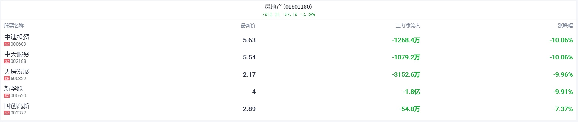 地产股继续弱势,天房发展、中迪投资、新华联午后跌停,中天服务触及跌停,华联控股、栖霞建设跌超4%。