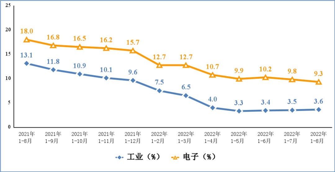 1—8月份,电子信息制造业固定资产投资同比增长18.7%,比同期工业投资增速高8.2个百分点,但比高技术制造业投资增速低4.3个百分点。
