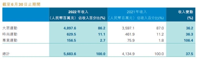 而在新兴电子商务平台快速增长的带动下,以索康尼和迈乐为代表的专业品牌收入增长强劲,较去年同期大增106.4%,占总体营收比重也由2021上半年的1.8%增长至2.7%。