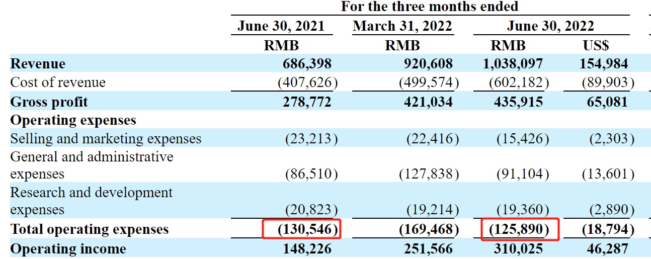 得益于上架容量的增长,秦淮数据第二季度的收入增长51.2%至10.38亿元,且毛利率有所改善,从2021年第二季度的40.6%提升至42%,上升1.4个百分点。同时,公司进一步提升了运营效率,总运营费用为1.26亿人民币,较2021年同期降低3.8%。在收入规模增长超50%之际,公司运营费用同比缩窄,表明公司的降本增效取得明显成果。