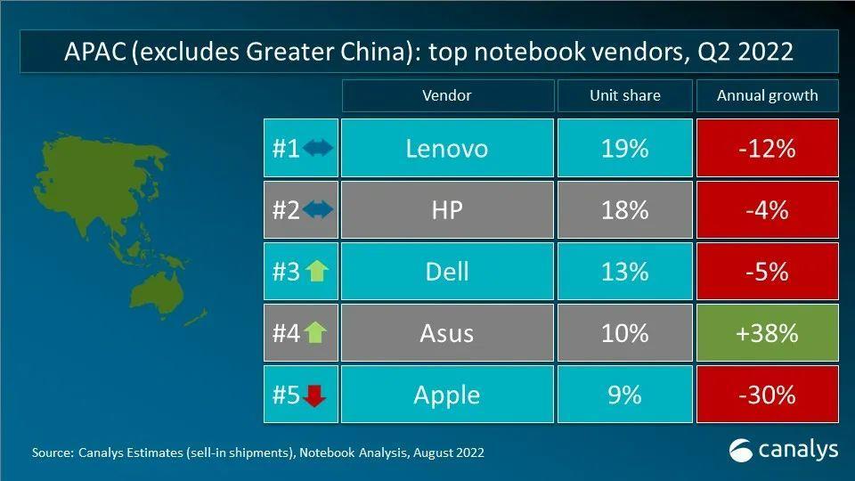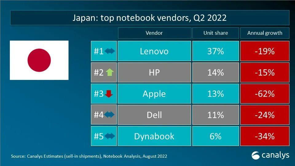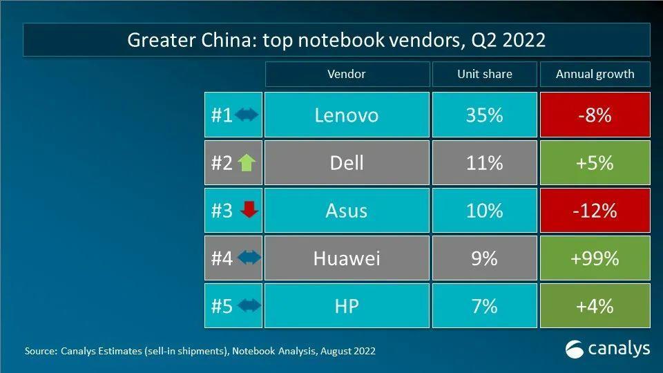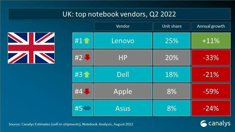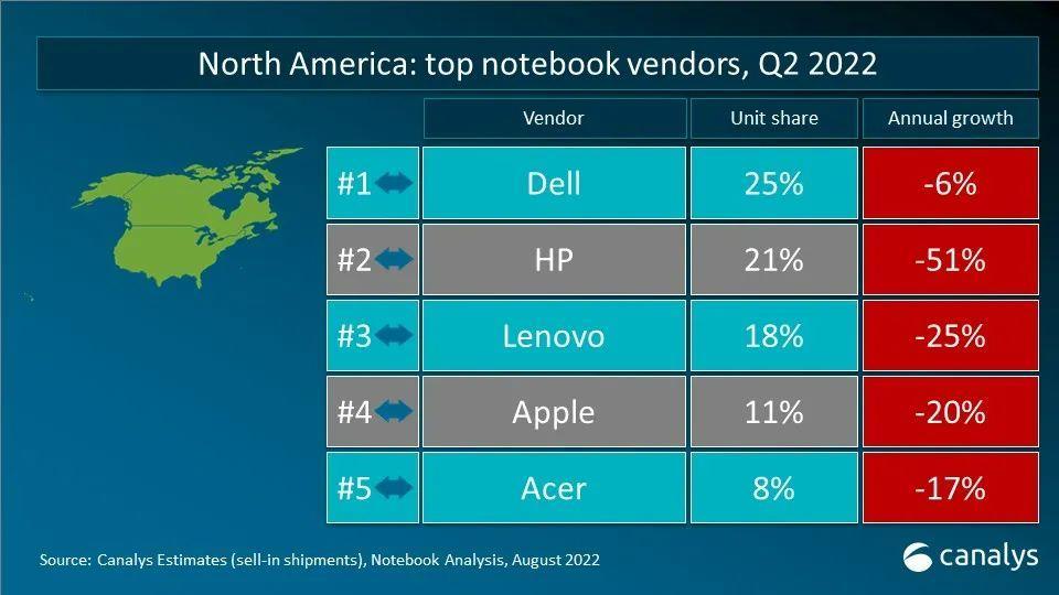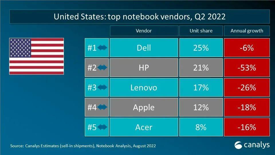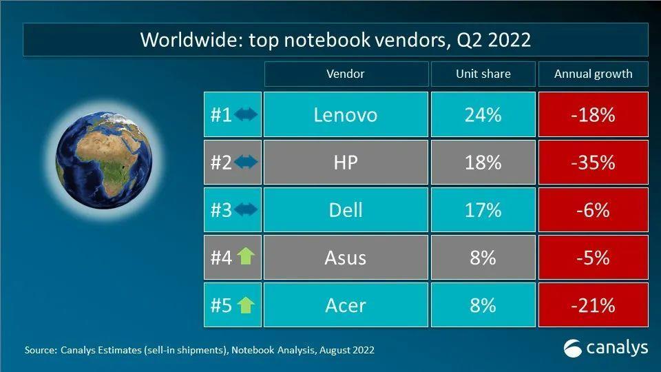 智通财经APP获悉,Canalys发布的数据显示,2022 年第二季度,全球多个最大规模的个人电脑市场面临巨大通胀压力,目前仍未得到有效遏制,导致需求受挫,来自消费领域的需求下滑尤其明显。由于教育采购相比去年同期持续低迷,在2022年第二季度,笔记本电脑连续第三个季度出现下滑,出货量下降 18.6% 至 5450 万台。
