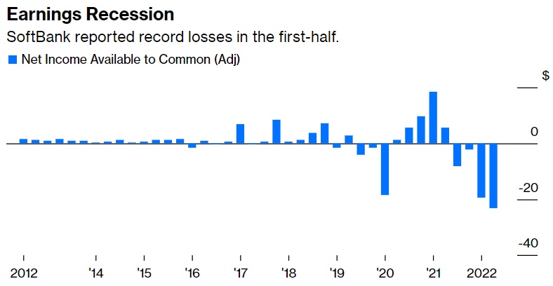 业绩衰退——软银上半年公布了创纪录亏损。