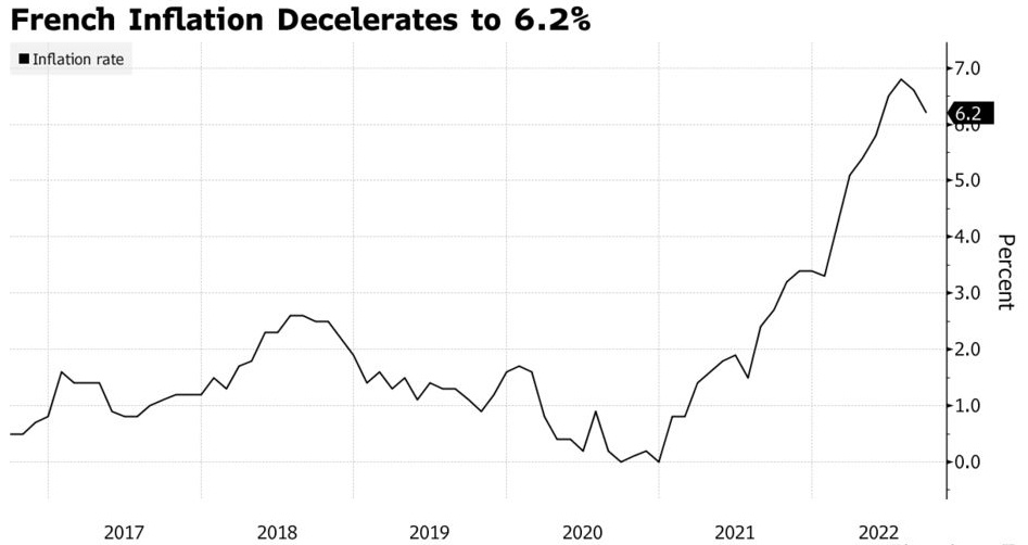 智通财经APP获悉,在欧洲央行决定是否再次大幅加息之际,法国通胀意外放缓,这是欧洲大陆主要经济体通胀状况出现分化的一部分。欧元区第二大经济体法国9月调和CPI同比初值为6.2%,预期6.6%,前值6.6%。法国9月调和CPI环比初值为-0.5%,预期-0.1%,前值0.5%。