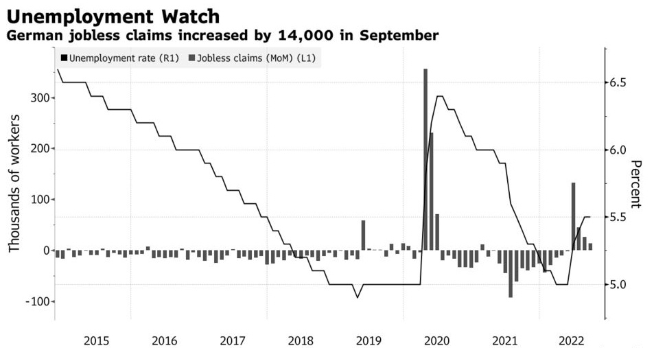 智通财经APP获悉,德国9月失业率保持稳定,这是欧洲最大经济体面临严冬之际的一个积极迹象。德国9月季调后失业人数增加1.4万,预期2万,前值2.8万。德国9月季调后失业率为5.5%,与预期、前值一致。