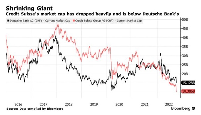 但据KBW的分析师估计,即使在出售了一些资产以资助任何重组、增长方案和任何未知情况后,该行可能还需要筹集40亿瑞士法郎(约合40亿美元)的资本。目前,瑞信的市值已从去年3月的逾300亿瑞士法郎跌至约95亿瑞士法郎,这意味着任何股份出售都会严重稀释长期持有人的权益。
