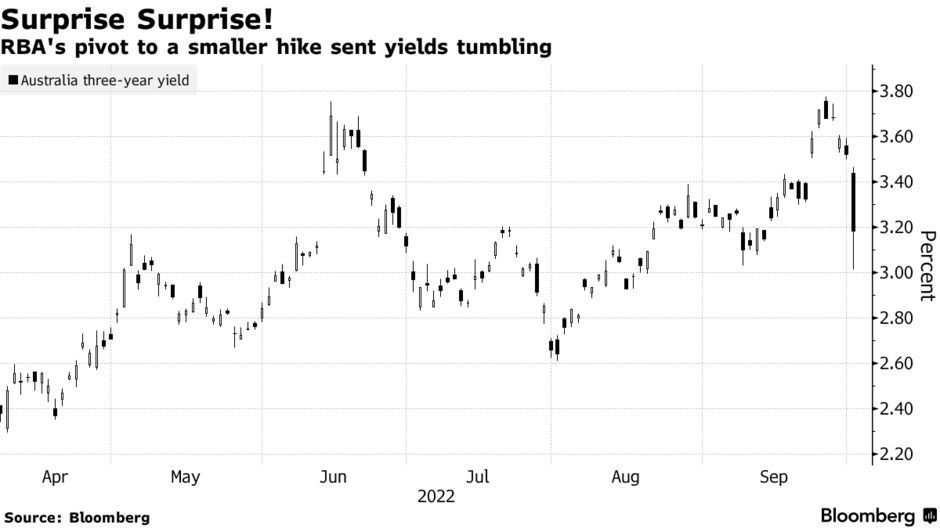 受澳洲联储此举影响,澳洲股市涨近4%;澳元兑美元一度跌1%,随后跌幅收窄至0.6%;3年期国债收益率跌幅扩大至39个基点。