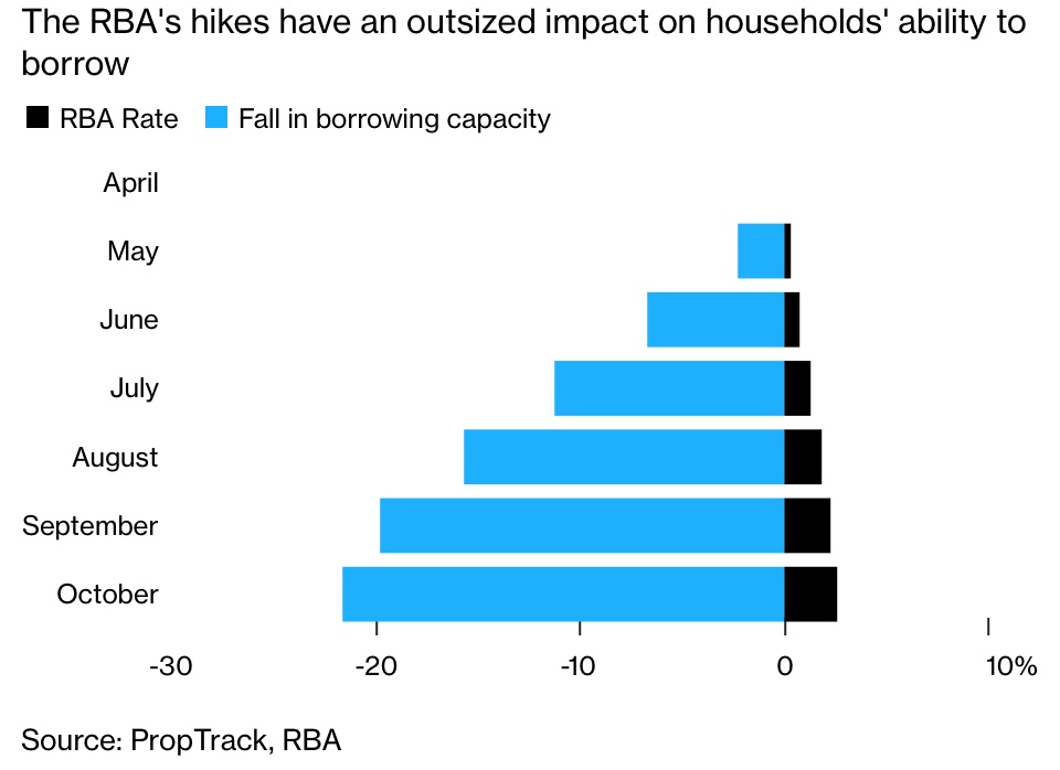 澳大利亚的政策制定者们意识到,澳大利亚家庭已负债累累,而大多数借款人都在使用可变利率抵押贷款,为遏制通胀而采取的过度紧缩措施可能会让规模达2.2万亿澳元(约合1.5万亿美元)的经济陷入衰退。
