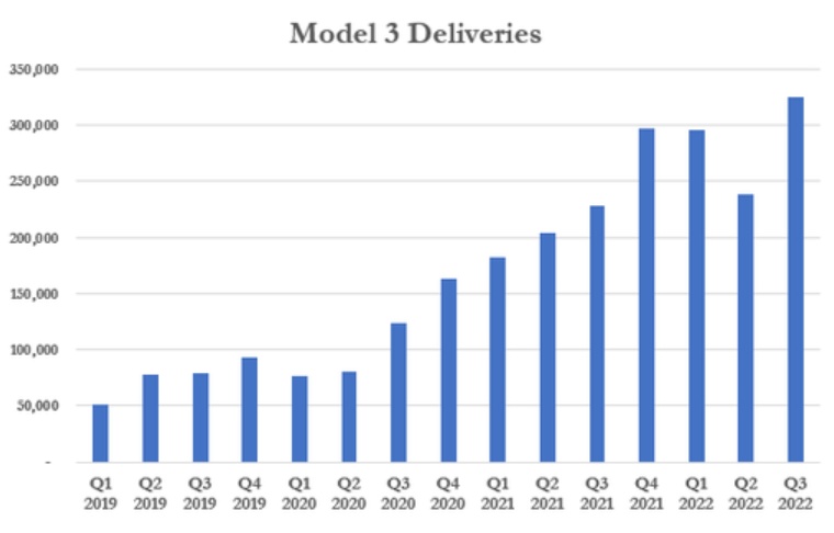 其中,特斯拉在三季度交付了325158辆Model 3和Model Y,以及18672辆Model S和Model X。