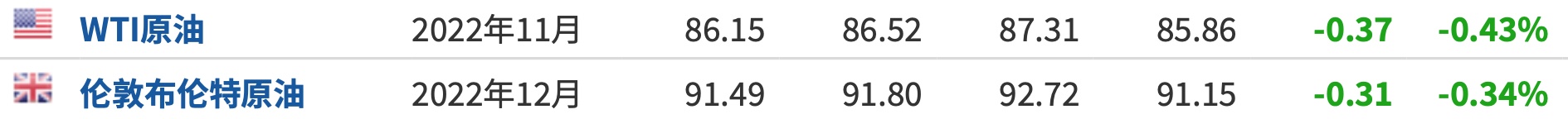 3. 截至发稿,WTI原油跌0.43%,报86.15美元/桶。布伦特原油跌0.34%,报91.49美元/桶。