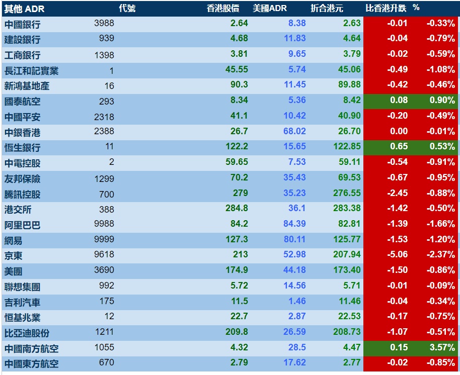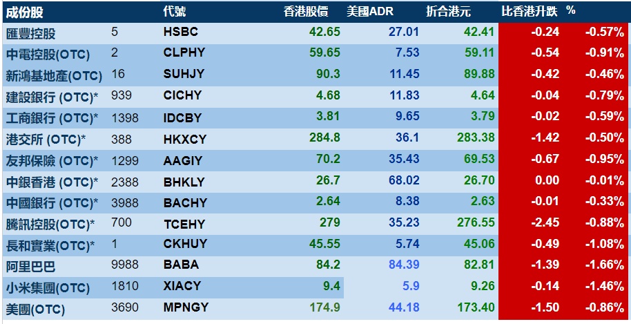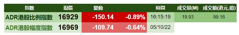 智通财经APP获悉,周三美股三大指数集体收跌,港股ADR指数下跌,按比例计算,收报16929点,较香港收市跌150.14点或0.89%。