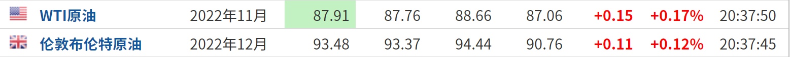3. 截至发稿,WTI原油涨0.17%,报87.91美元/桶。布伦特原油涨0.12%,报93.48美元/桶。
