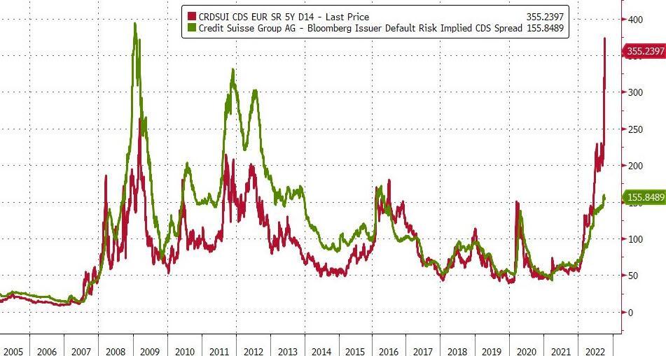 被摩根大通上调股票评级后,瑞士上市的瑞信欧股周四收涨2.6%,瑞信美股收涨近1.7%。不过,体现市场预期违约风险的瑞信五年期信用违约互换(CDS)合约价格仍居高不下,周四盘中交投于355个基点左右,虽然较周三有所回落,但还处于瑞信濒临破产传闻后周一所创的高位。
