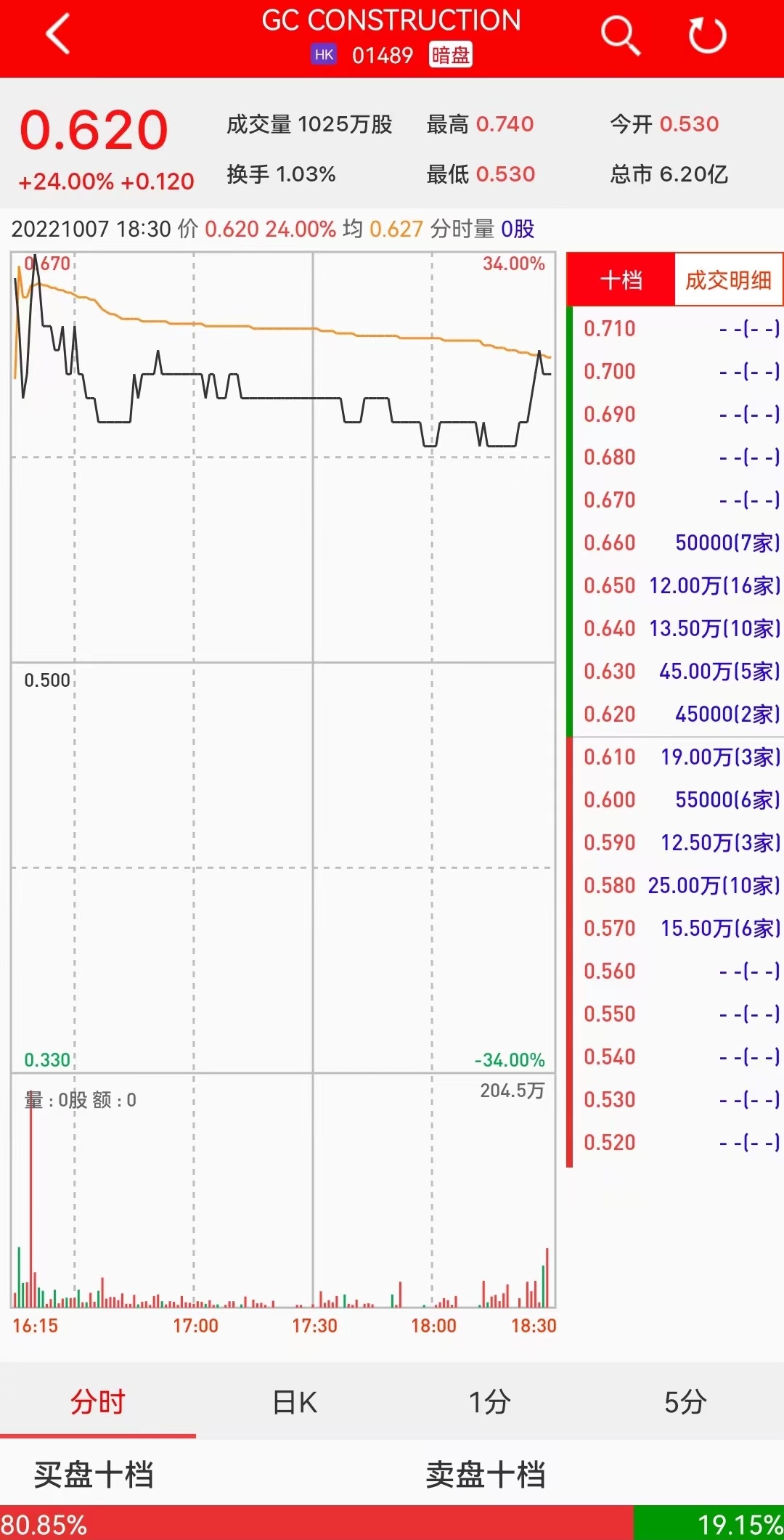 智通财经APP获悉,GC CONSTRUCTION(01489)将于10月10日(下周一)在香港挂牌。截至收盘,利弗莫尔证券暗盘交易显示报价0.62港元,较招股价0.50港元涨24.00%。每手5000股,不计手续费,每手赚600港元。