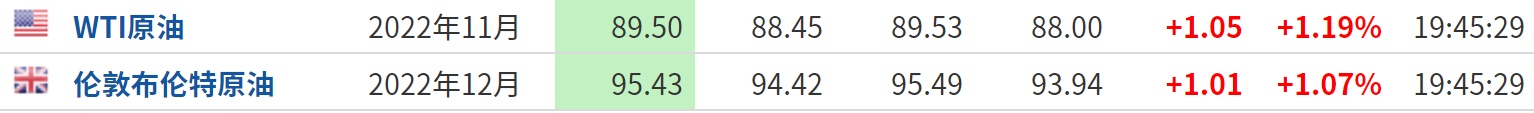 3. 截至发稿,WTI原油涨1.19%,报89.50美元/桶。布伦特原油涨1.07%,报95.43美元/桶。