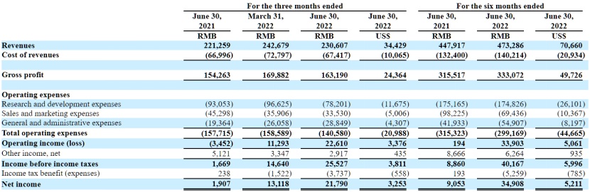 9月22日,洪恩(IH.US)公布了其今年Q2季度财务业绩。财报显示,公司当期实现营收2.31亿元,同比增长4.2%;当期净利润为2180万元,相较上年同期的190万元;,大幅增长10.5倍。
