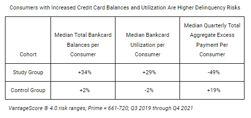 TransUnion的研究从2019年第三季度到2021年第四季度跟踪了590万消费者的流动性状况,并将他们分为两组:在整个研究期间保持当前状态的消费者(对照组)和在某个时间点逾期超过90天的消费者(研究组)。