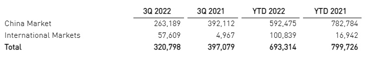智通财经APP获悉,10月7日,小牛电动(NIU.US)公布了2022年第三季度的销量报告。数据显示,该公司Q3的销量为320798辆,同比下降19.2%。其中,中国市场的销量为263189辆,较2021年同期下降32.9%;国际市场的销量达到57609辆,同比增长1059.8%。