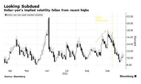智通财经APP获悉,美元兑日元一周隐含波动率远低于上月高点,现已回升至9月份的干预水平。投资者指出,开始有迹象表明,日本为支撑陷入困境的日元而进行的任何进一步干预,其影响都将不如以前那么大。