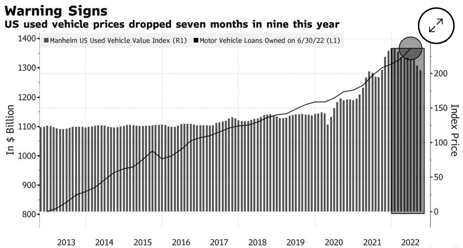智通财经APP获悉,在统计数据显示美国二手车价格在9月份下降后,Ark Investment Management LLC创始人兼首席执行官、“木头姐”凯西•伍德(Cathie Wood)指出了万亿美元汽车债务市场“严重亏损”的风险。
