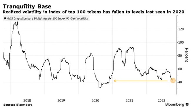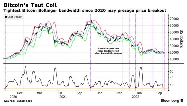 智通财经APP获悉,全球最大的加密货币比特币自6月中旬创下新低以来的四个月里,持续在2万美元左右的相对有限区间内波动,这打破了人们对这种极具波动性的加密货币的刻板印象。然而,如果历史可以提供指导意义的话,近期异常平静的比特币可能会在未来的动荡中大幅下挫。