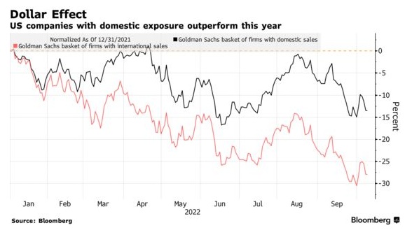 高盛选择的收入100%来自美国国内的股票,其表现超过了2022年71%的收入来自美国以外销售的股票。