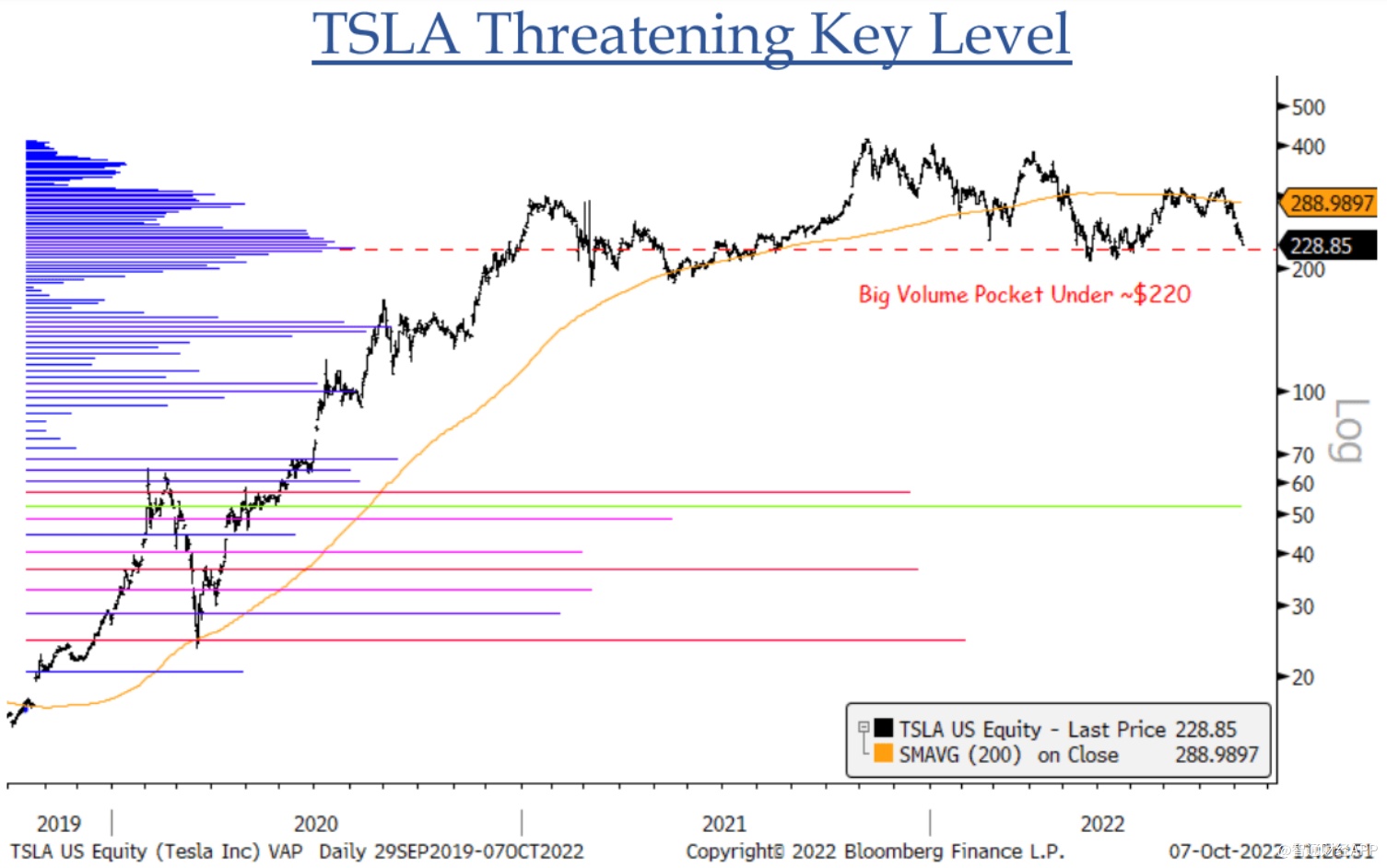 Krinsky表示,特斯拉在220美元以下的交易量很大。