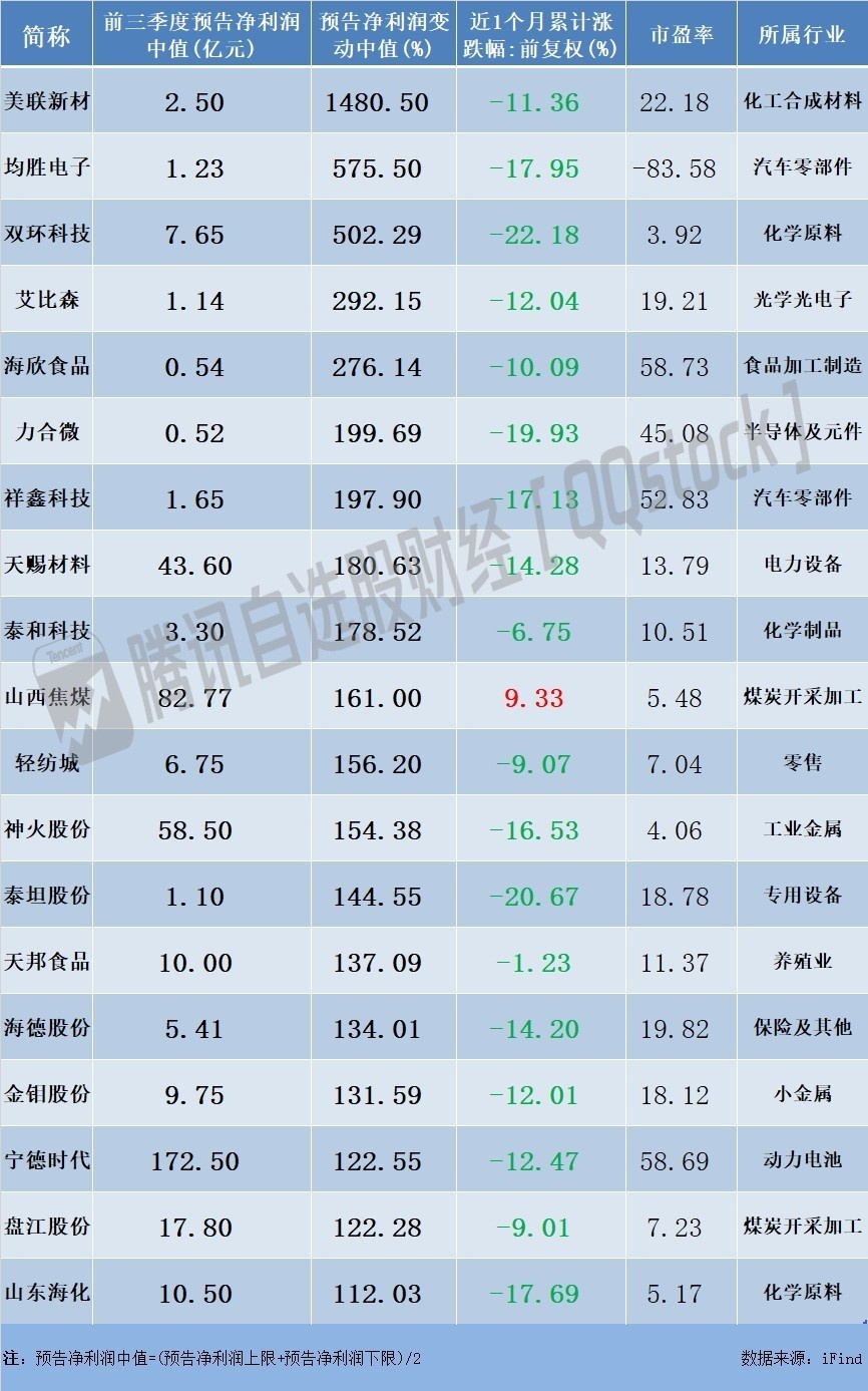 前三季度预计净利润翻倍以上增长公司名单如下: