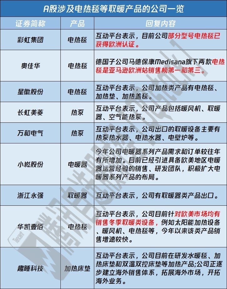 冷空气来袭,世乒赛送电热毯!取暖产品卖爆,这些公司有涉及