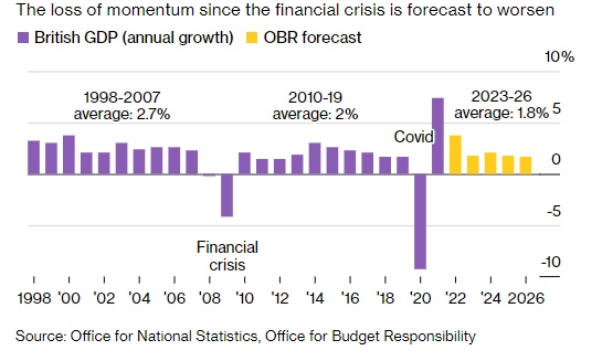 如果不采取行动,在2025年之后,政府每年的借贷仍将达到1000亿英镑左右,比3月的乐观预测高出700亿英镑。