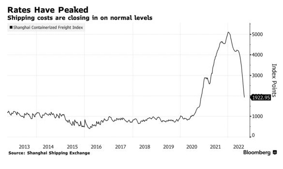 智通财经APP注意到,马士基的利润飙升是因为运力短缺,加上供应链瓶颈和新冠疫情封锁,导致运费飙升。根据上海航运交易所集装箱指数(衡量中国出港运费的指标),从2019年10月到2022年1月的峰值,运费上涨了7倍多,之后随着港口开放和拥堵缓解,运费价格下降了约60%。