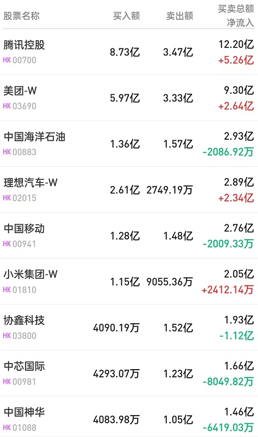 腾讯(00700)获净买入7.31亿港元。消息面上,瑞信发布研报称,腾讯旗下微信于7月中推出视频号信息流广告,作为腾讯短期内最明显的增长动力,该行认为利用微信生态系统,相信视频号在内容分发及提供接入私域流量培育与同业不同,对低线城市的敞口更大。瑞信预期视频号2023及2024年的广告收入将达至70亿及140亿元人民币,对盈利影响3%至5%,将腾讯目标价由437港元上调至441港元。