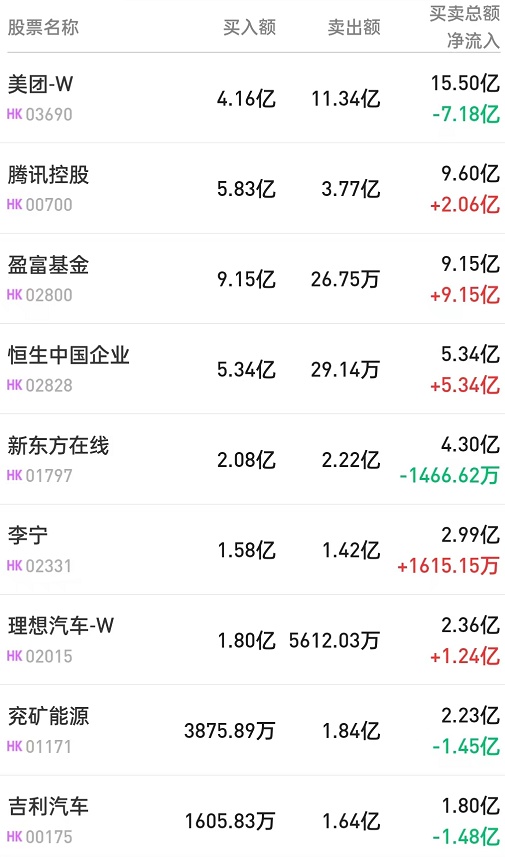 此外,盈富基金(02800)、恒生中国企业(02828)、小米集团-W(01810)分别获净买入9.14亿、5.33亿、2412万港元。而中海油(00883)遭净卖出2086万港元。