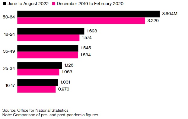 自新冠疫情开始以来,成千上万的工人失去了工作,这加剧了工资的增长,几乎没有迹象表明生活成本危机正在促使他们返回工作岗位。最近三个月,约有25.2万的待业人数,增长的原因是老年工人的长期疾病和成为学生的年轻人。