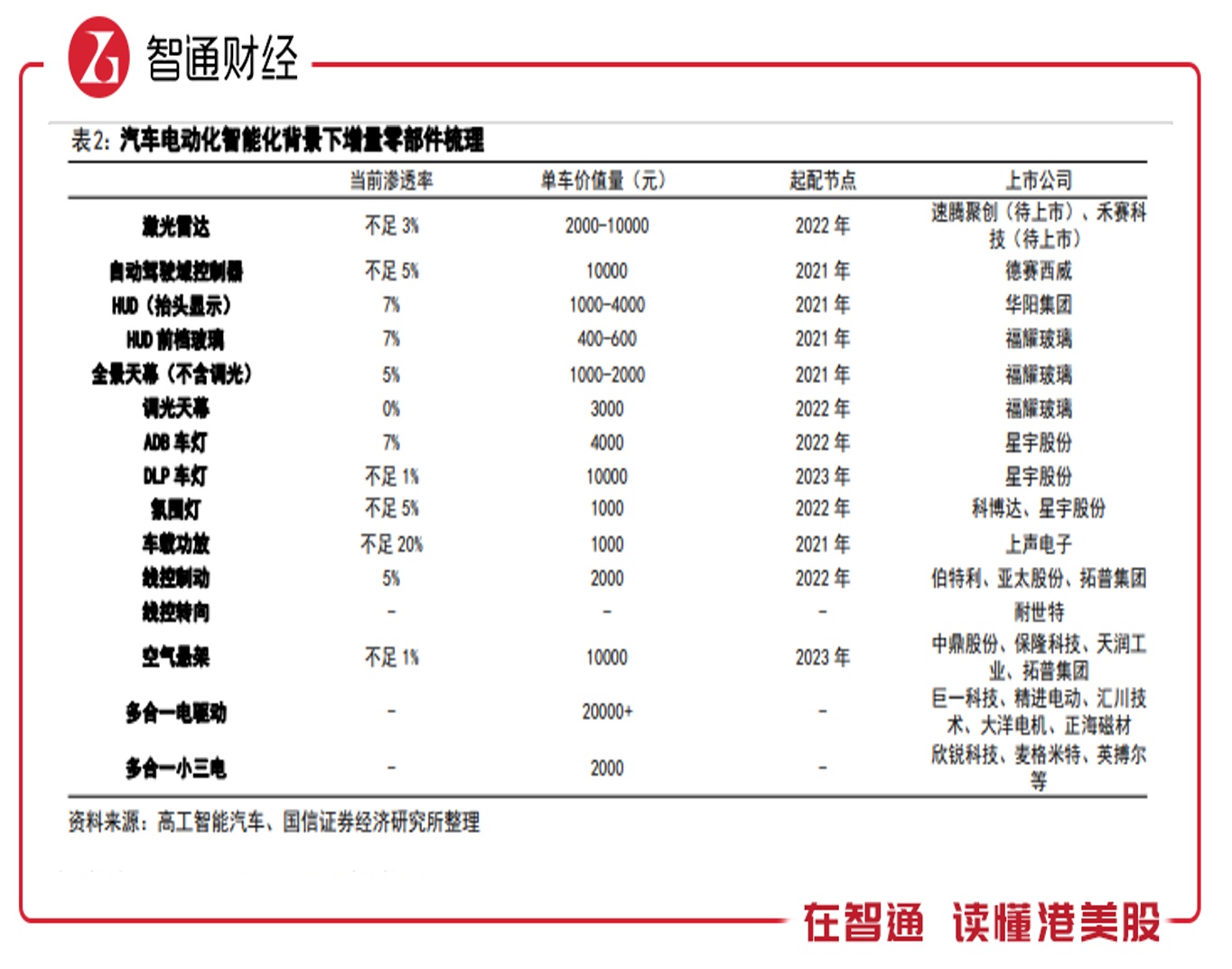 然而,智能化主要体现在部分中高端车型上,因此渗透率比较低,根据国信证券研报,目前激光雷达渗透率不足3%,在上市车型中,小鹏P5顶配版是首家搭载双激光雷达的车型,另外自动驾驶域控制器渗透率不足5%等。智能化是各大新能源车企获取市场的核心,未来相关零件具有较大需求前景。