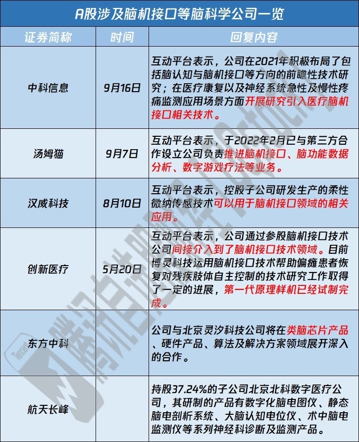 据此,腾讯自选股据互动平台及公开市场消息整理出脑机接口相关概念股,供您参考。