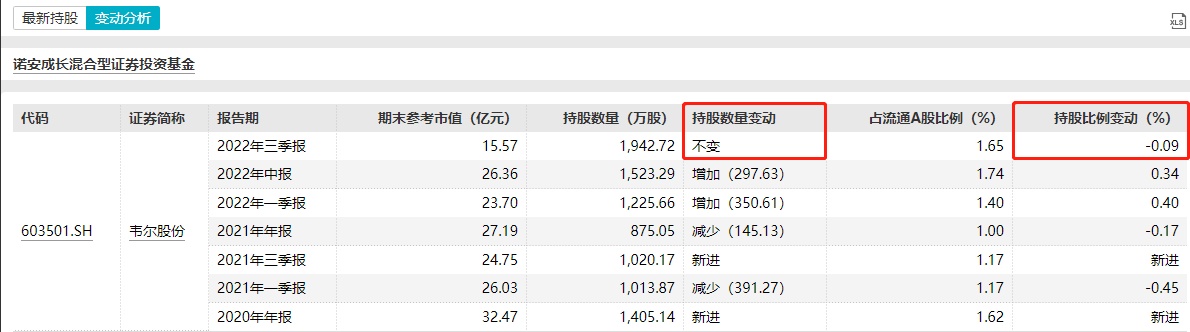 诺安基金名将蔡嵩松三季度则“按兵不动”,其旗下诺安成长混合持股数量为1942.72万股,占总流通股本持股比例1.65%,较二季度有所下降。据不完全统计,截至6月30日,蔡嵩松持股韦尔股份1523.29万股,这些股票三季度或已浮亏超14亿。