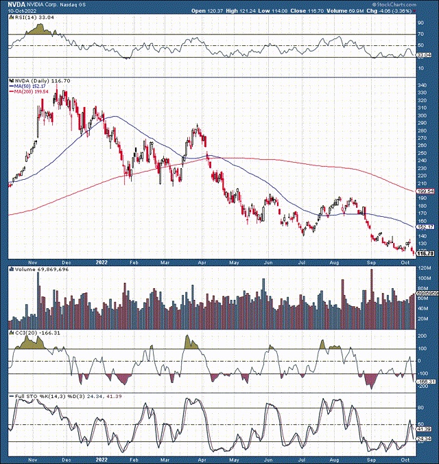 英伟达需要面对的风险在于,尽管其中长期发展值得看好,但从技术上讲,市场目前仍处于熊市,因此该股股价可能会触及更低水平。此外,英伟达可能会面临日益激烈的竞争。通胀导致成本上升对该公司盈利能力的侵蚀也是投资者应该仔细考虑的风险因素。