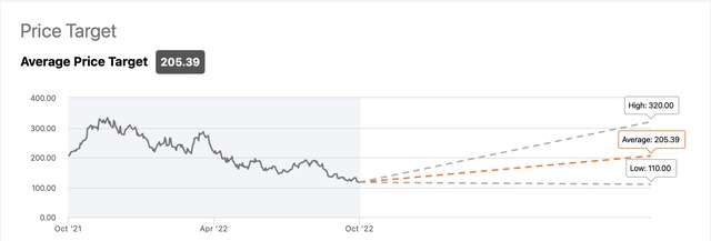 华尔街对英伟达未来一年的平均目标价为205美元,较当前水平高出约80%。其中,最低目标价为110美元,与该股当前股价水平相当;最高目标价为320美元,较当前股价水平高出约180%。