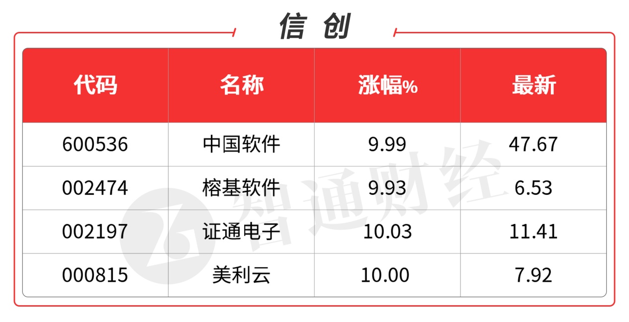 市场总体是普涨格局,但上涨的逻辑并不相同。市场最强板块首推信创,龙头国脉科技(002093.SZ)开盘就被顶了一字,说明市场认可这条线。这其中有两个逻辑,一个是自主可控方向,硬件这块芯片被外围锤得很厉害,软件这块必须要加强。另外一个是对于接下来的重大会议有预期,估计是订单方面会有好消息。前期率先启动的南天信息(000948.SZ)、榕基软件(002474.SZ)卷土重来,今天大品种中国软件(600536.SH)也动了,其它有中国长城(000066.SZ)等一堆。