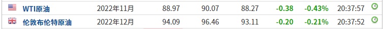 3. 截至发稿,WTI原油跌0.43%,报88.97美元/桶。布伦特原油跌0.21%,报94.09美元/桶。