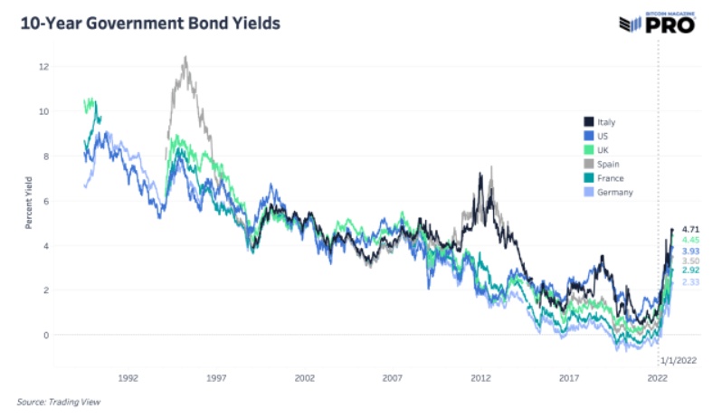 主权债券收益率几乎每天都在上升,而短期内压低或保持收益率持平的唯一动力也只有像英国央行、日本央行和欧洲央行宣布的干预措施。