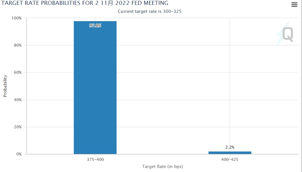 交易员们巩固了对下个月大规模加息的押注,即再度暴力加息75个基点,且不排除100个基点的可能性——最新CPI数据公布后,美联储11月加息100个基点的市场预期一度升至10%,高于CPI报告出炉前的零几率。