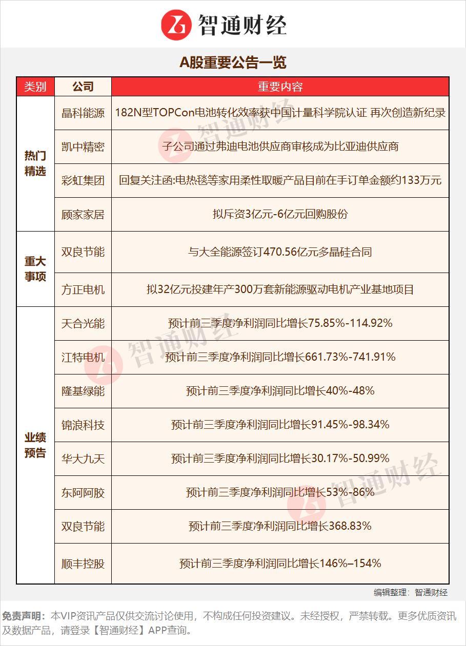 【A股重要公告一览】