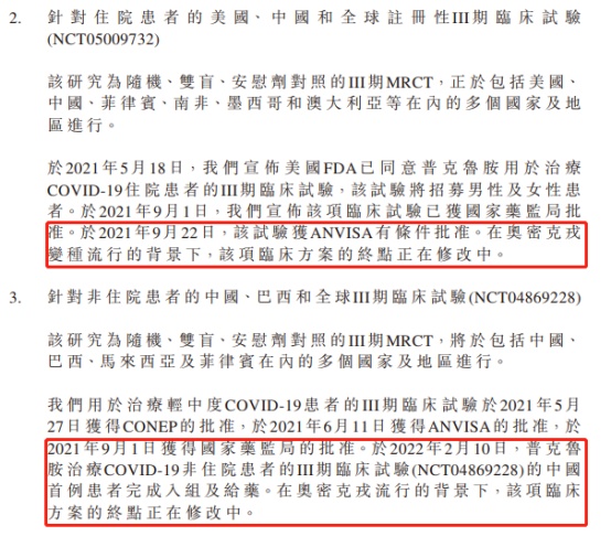 另外,不断更迭的新冠变种病毒也影响了后续临床和申报的进度,正如财报中提到,“在奥密克戎变种流行的背景下,该项临床方案的终点正在修改中”。