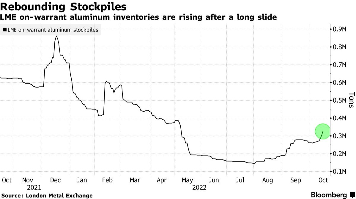 据了解,由于欧洲能源危机迫使欧洲许多冶炼厂减产,导致LME库存降至数十年来最低水平,铝在今年以来一直受到供应冲击的冲击。然而,这还不足以抵消全球经济增长放缓对需求的冲击,导致价格较俄乌冲突升级后下滑43%创纪录。