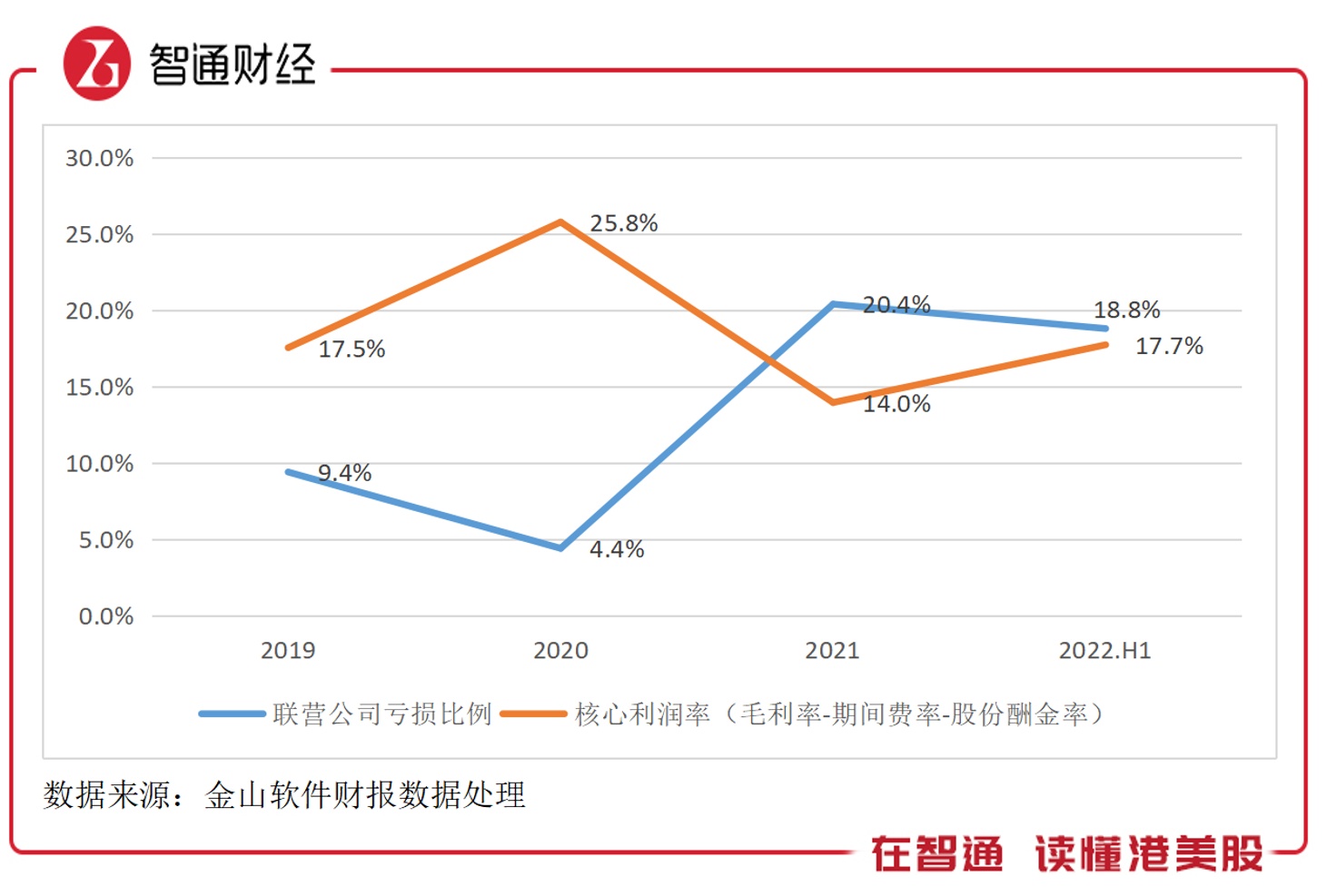 联营公司是利润核心的变量,自2019年开始亏损,持续性亏损成为业绩的最重要“雷点”,2021年及2022年上半年分别亏13亿元及6.9亿元,亏损比例分别为20.4%及18.8%,已超过了业务的核心利润率。此次减值拨备,大概率为联营公司项,截止2022年6月,该公司在联营公司的权益有119.19亿元,扣除拨备还有60亿元。