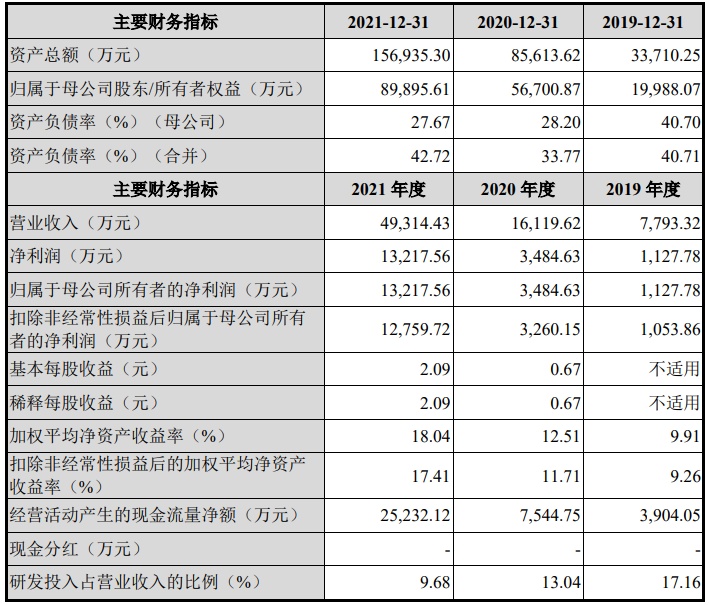 财务方面,于2019年度、2020年度及2021年度,伟测科技实现营业收入分别约为7793.32万元、1.61亿元及4.93亿元人民币;同期,归属于母公司所有者的净利润分别约为1127.78万元、3484.63万元及1.32亿元人民币。
